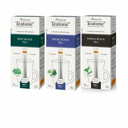 Набор чайных напитков Teatone со вкусами чабрец, черный индийский и черный с мятой 3 шт по 15 стиков