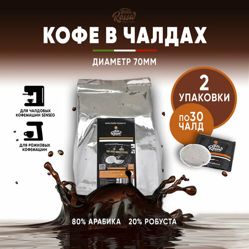 Чалды 60 шт. Арабика / Робуста (70 мм, формат Senseo), кофе молотый Testa Rossa
