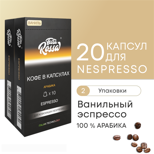 Ванильный Эспрессо — 100% Арабика — Капсулы Testa Rossa — 20 шт, набор кофе в капсулах неспрессо, для кофемашины NESPRESSO