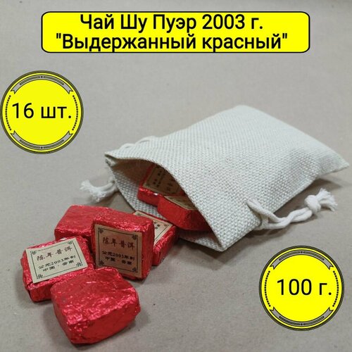 Настоящий Китайский Чай Шу Пуэр 2003 г. "Выдержанный красный". Чай черный листовой прессованный в мешочке, 100 г. Подарочный мешок Шу пуер в подарок на 23 февраля / 8 марта коллеге, мужчине, женщине