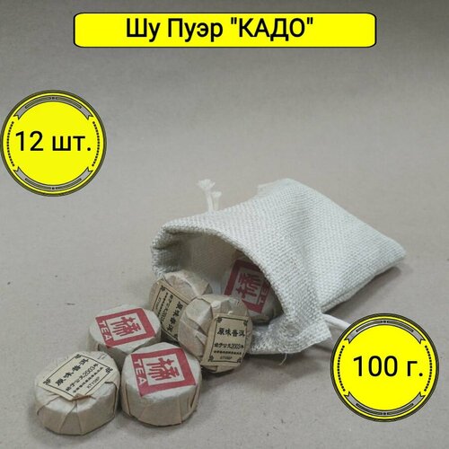 Премиальный выдержанный Китайский Чай Шу Пуэр "кадо". Чай черный листовой спрессованный в мешочке, 100 г. Подарочный набор конфеток Шу пуер в подарок на 23 февраля / 8 марта коллеге, мужчине, женщине