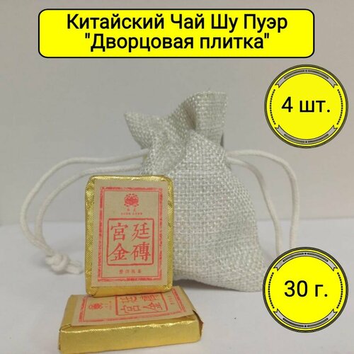 Премиальный Китайский Чай Шу Пуэр "Дворцовая плитка". Чай черный листовой спрессованный в мешочке, 30 г. Подарочный набор конфеток Шу пуер в подарок на 23 февраля / 8 марта коллеге, мужчине, женщине