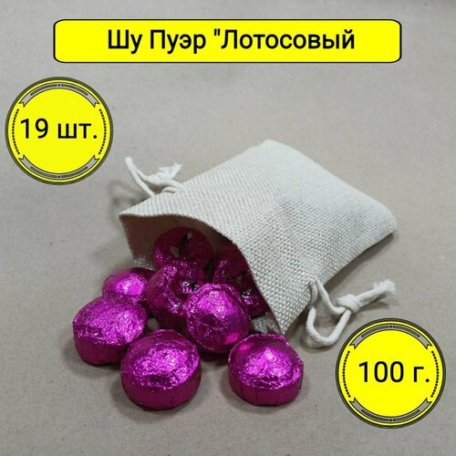 Настоящий Китайский Чай Шу Пуэр "Лотосовый". Чай черный листовой прессованный в мешочке, 100 г. Подарочный набор конфеток Шу пуер в подарок на 23 февраля / 8 марта коллеге, мужчине, женщине