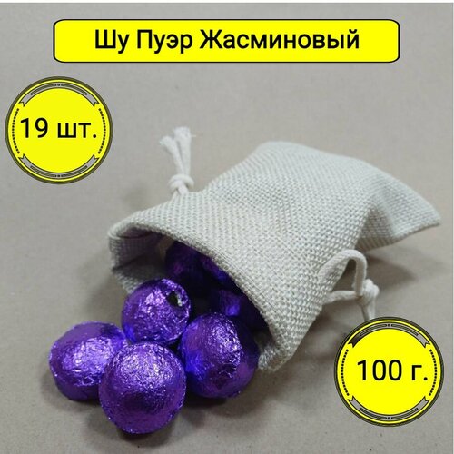 Настоящий Китайский Чай Шу Пуэр "Жасминовый". Чай черный листовой прессованный в мешочке, 100 г. Подарочный набор конфеток Шу пуер в подарок на 23 февраля / 8 марта коллеге, мужчине, женщине