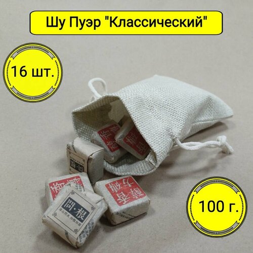 Настоящий Китайский Чай Шу Пуэр "Классический". Чай черный листовой прессованный в мешочке, 100 г. Подарочный набор конфеток Шу пуер в подарок на 23 февраля / 8 марта коллеге, мужчине, женщине