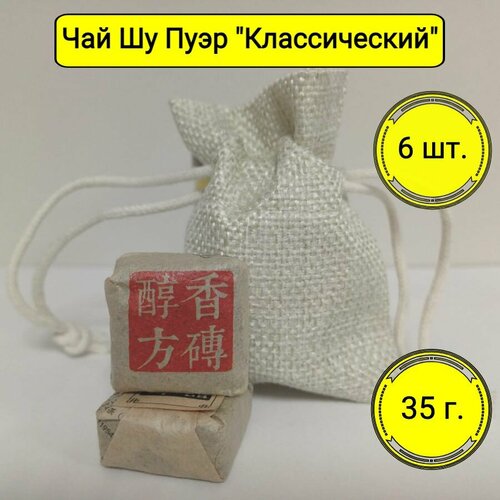 Настоящий Китайский Чай Шу Пуэр "Классический". Чай черный листовой прессованный в мешочке, 35 г. Подарочный набор конфеток Шу пуер в подарок на 23 февраля / 8 марта коллеге, мужчине, женщине