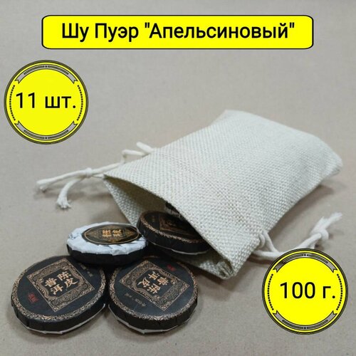 Настоящий Китайский Чай Шу Пуэр "Апельсиновый". Чай черный листовой прессованный в мешочке, 100 г. Подарочный набор конфеток Шу пуер в подарок на 23 февраля / 8 марта коллеге, мужчине, женщине