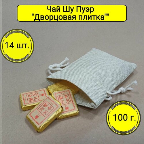 Премиальный Китайский Чай Шу Пуэр "Дворцовая плитка". Чай черный листовой спрессованный в мешочке, 100 г. Подарочный набор конфеток Шу пуер в подарок на 23 февраля / 8 марта коллеге, мужчине, женщине