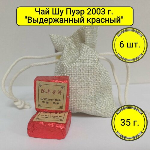 Настоящий Китайский Чай Шу Пуэр 2003 г. "Выдержанный красный". Чай черный листовой прессованный в мешочке, 30 г. Подарочный мешок Шу пуер в подарок на 23 февраля / 8 марта коллеге, мужчине, женщине