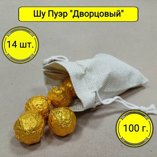 Премиальный Китайский Чай Шу Пуэр "Дворцовый". Чай черный листовой скрученный вручную в мешочке, 100 г. Подарочный набор конфеток Шу пуер в подарок на 23 февраля / 8 марта коллеге, мужчине, женщине