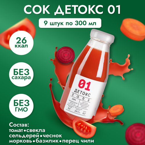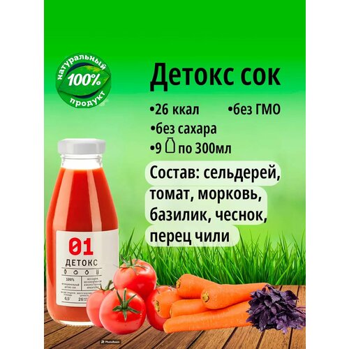 Сок детокс 01 натуральный без сахара для похудения без гмо сладкий томат с базиликом, 9 шт по 300 мл, 4390 гр