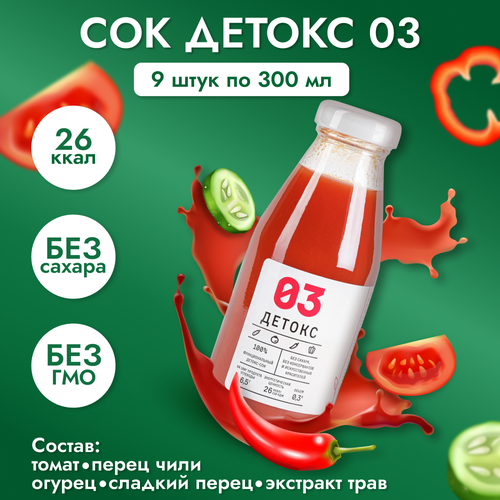 Сок детокс 03 натуральный без сахара для похудения без гмо острый томат с огурцом, 9 шт по 300 мл, 4390 гр