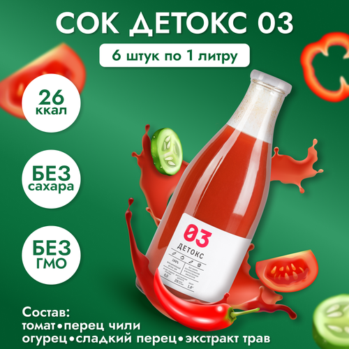Сок "Детокс №03" натуральный без сахара для похудения острый томат с огурцом 6 шт по 1 л