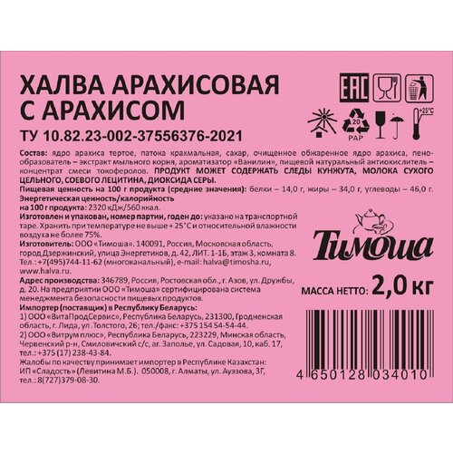 Халва Тимоша, арахисовая, с орехами, 2кг
