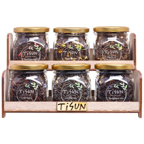 Чай листовой черный и зеленый, набор чая: травяной, каркаде подарочный Tisun ассорти из 6 вкусов