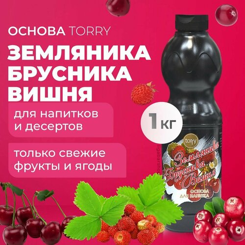Основа Torry Земляника Брусника Вишня 1 кг, сироп для напитков, Торри для коктейлей, лимонадов, десертов