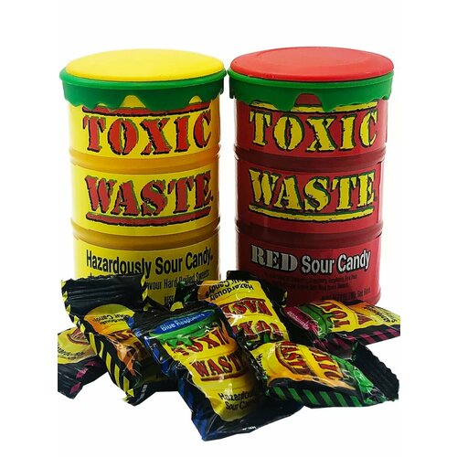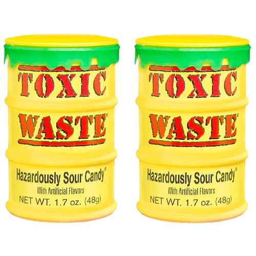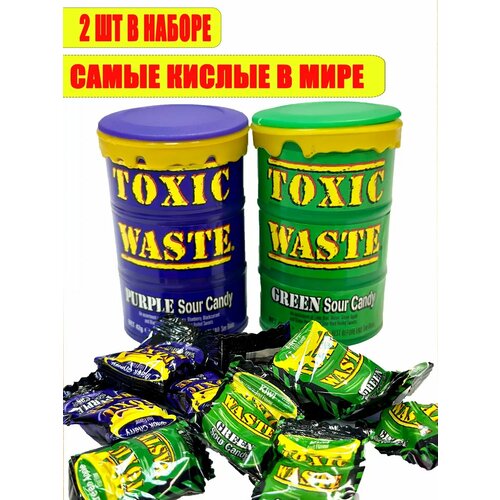 Набор из самых кислых конфет в мире Toxic Waste / два цвета: желтая и фиолетовая бочки