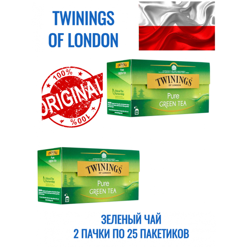 Twinings Pure Green Tea 2г x 25 пак чай зеленый (упаковка 2 штуки) (086668376)