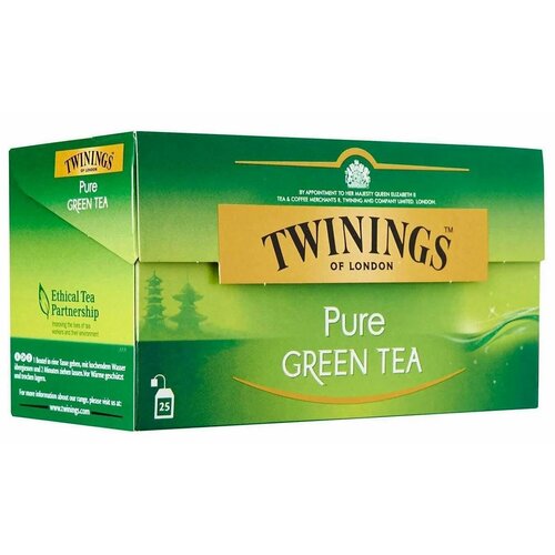 Зеленый чай Twinings Pure Green, в пакетиках, Индия, 25 пакетов