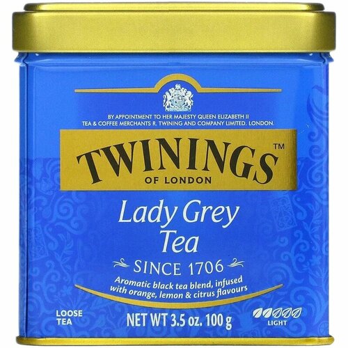 Чай Twinings Lady Grey, черный, листовой, 100г, в металлической банке