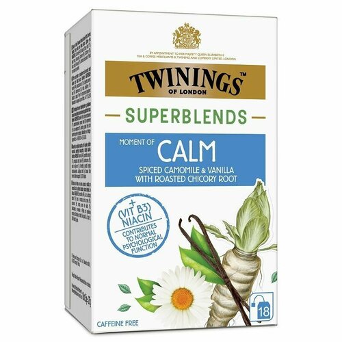 Чай травяной Twinings Superblends Calm успокаивающий (ромашка, специи, ниацин (витамин В3)) 18 пакетиков, 27 г (из Финляндии)