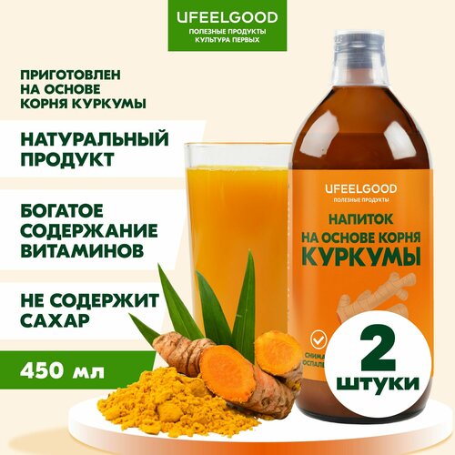 Сок из корня Куркумы 100% БИО vegan, полезная добавка для похудения, детокс, натуральный куркумин, UFEELGOOD 450 мл. х 2 шт.
