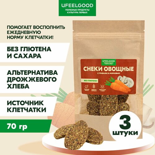 Снеки овощные с грибами и морковью UFEELGOOD, 70 г. * 3 шт.