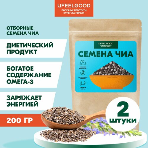 Семена чиа, натуральные, пп продукты, здоровое питание, суперфуд, UFEELGOOD, 200 г. х 2 шт.