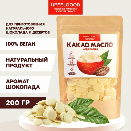 Какао масло (медальоны) пищевое, веган, натуральные ингредиенты, UFEELGOOD, 200 г.
