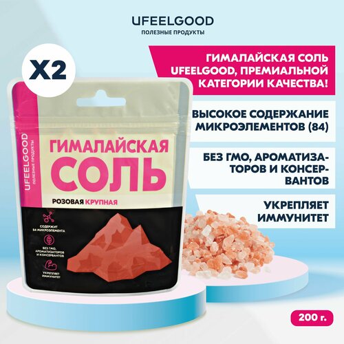 Гималайская розовая соль, крупная, специя без вкусовых добавок и красителей, UFEELGOOD 200 г. х 2 шт