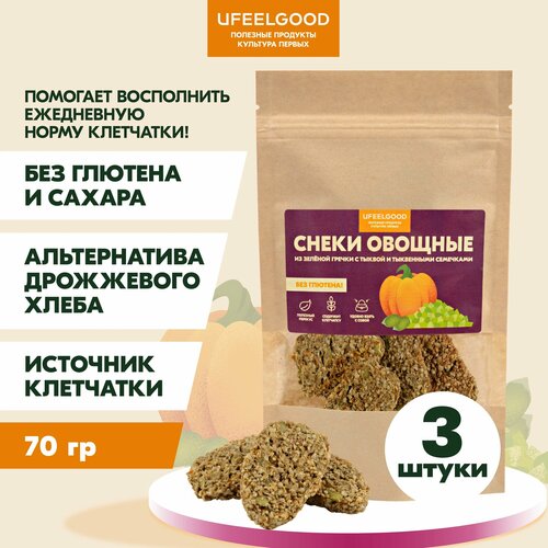 Снеки овощные из зелёной гречки с тыквой и тыквенными семечками UFEELGOOD, 70 г. * 3 шт.
