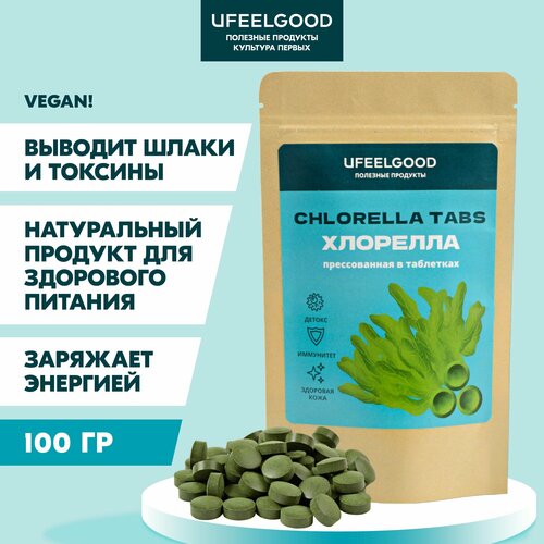 Хлорелла прессованная в таблетках, водоросли, витамины, UFEELGOOD, 100 г.