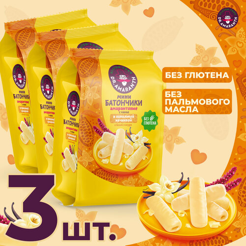Мини-батончики без глютена "DR.AMARANTH" с ванильной начинкой в белой глазури, 3шт по 100г