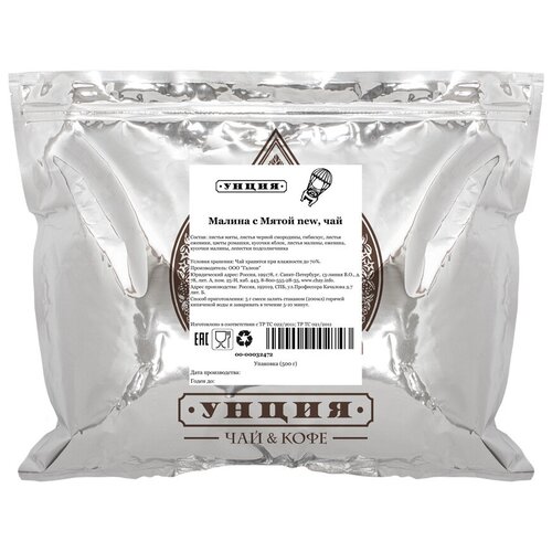 Фруктово-травяной чай "Малина с мятой" Унция упаковка 500 гр, фруктовый чай, травяной чай, успокаивающий чай