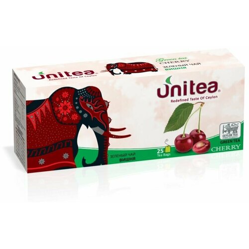 UNITEA Чай зеленый, Вишня, 25 пакетиков