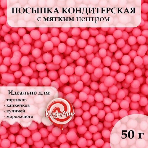 Посыпка кондитерская в кондитерской глазури "Жемчуг" Малиновый 2-5 мм 50 г