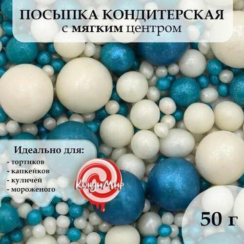 Посыпка кондитерская с мягким центром "Бисер", бело-голубой, 50 г