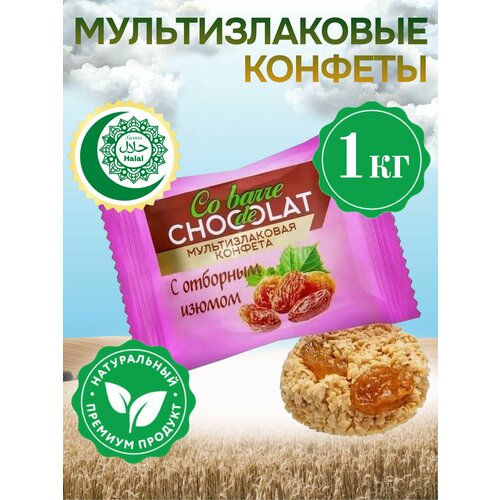 Конфеты мультизлаковые Co barre DE CHOCOLAT с отборным изюмом, белая глазурь, 1 кг