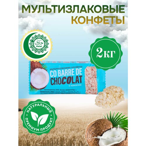 Конфеты мультизлаковые Co barre DE CHOCOLAT с кокосом, белая глазурь, 2кг