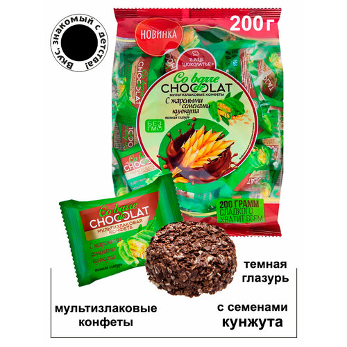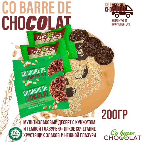 Конфеты мультизлаковые с жареными семенами кунжута с темной глазурью 200г/Co barre de CHOCOLAT/ Вкус, знакомый с детства!