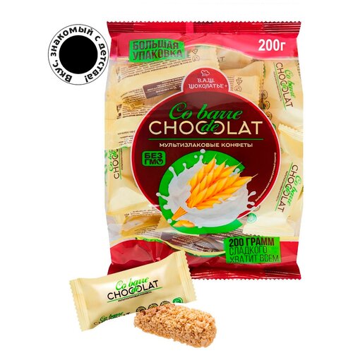 Конфеты мультизлаковые с белой глазурью 200г/Co barre de CHOCOLAT/ Вкус, знакомый с детства!