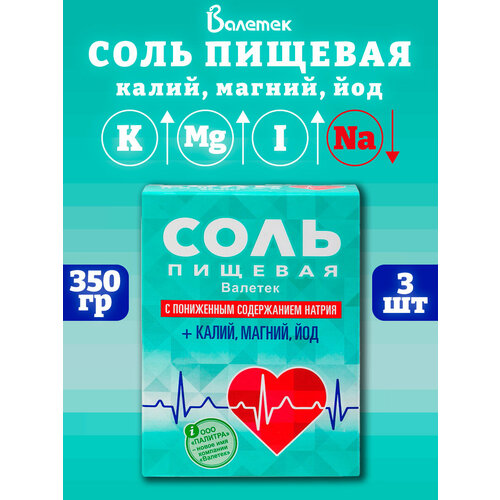 Соль пищевая калий, магний, йод, Валетек, 3 шт. по 350 г