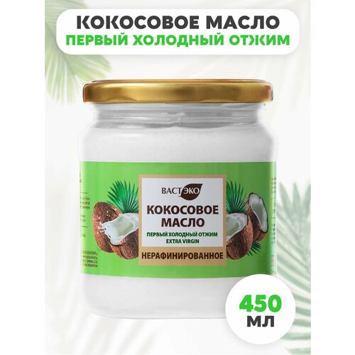 Масло кокосовое нерафинированное EXTRA VIRGIN, 450 мл / здоровое питание, без лактозы, без казеина, стеклянная банка, кето продукты, для еды, для тела