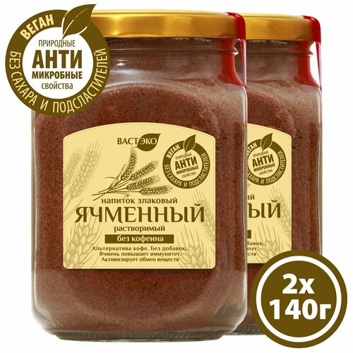 Напиток злаковый Ячменный растворимый, 2 шт. х140 г, без кофеина, без сахара и подсластителей