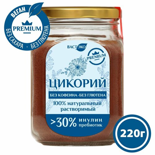 Напиток Цикорий премиум натуральный растворимый порошок, 220 г. Инулин >30%. БИО. Органик. Без кофеина, глютена, сахара, лактозы. Веган