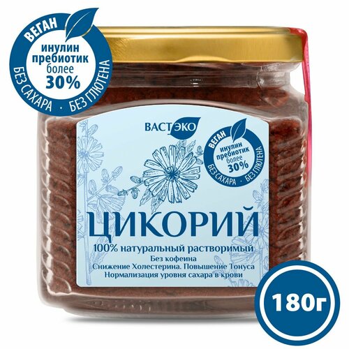 Напиток Цикорий натуральный растворимый порошок, 180 г. Инулин >30%. БИО. Органик. Без кофеина, глютена, сахара, лактозы. Веган
