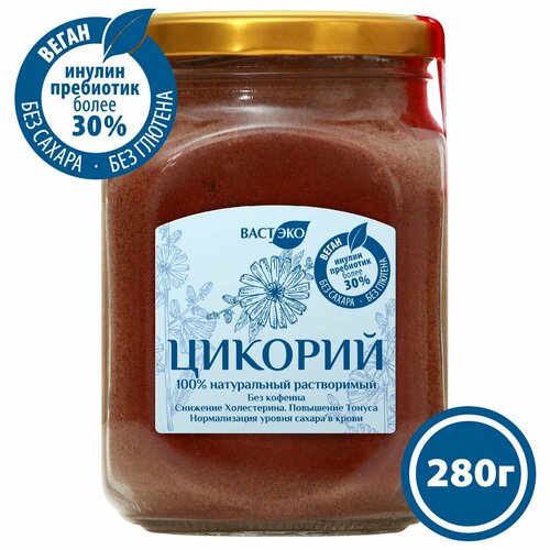 Напиток Цикорий натуральный растворимый порошок, 280 г. Инулин >30%. БИО. Органик. Без кофеина, глютена, сахара, лактозы. Веган