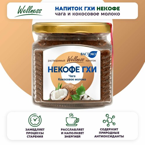 Чага чай Напиток ГХИ некофе с чагой и кокосовым молоком, 250 г, растворимый без сахара и лактозы, без кофеина, для иммунитета и восстановления, здоровое и правильное питание кето диета