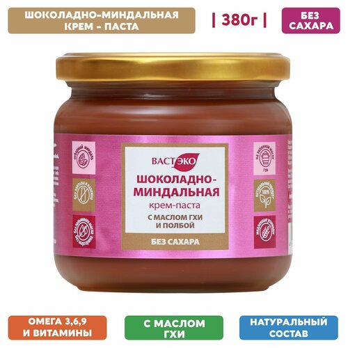 Шоколадная паста без сахара Миндальная, с тертым какао, маслом ГХИ и Полбой, 380 г / полезные сладости для детей, здоровое питание, без лактозы