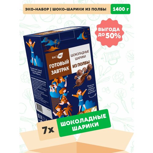 Эко Шоколадные Шарики с Полбой, 1400 г, коробка 7 шт, Веган, Здоровое питание, ЗОЖ